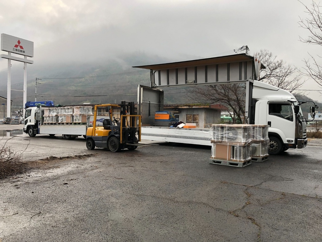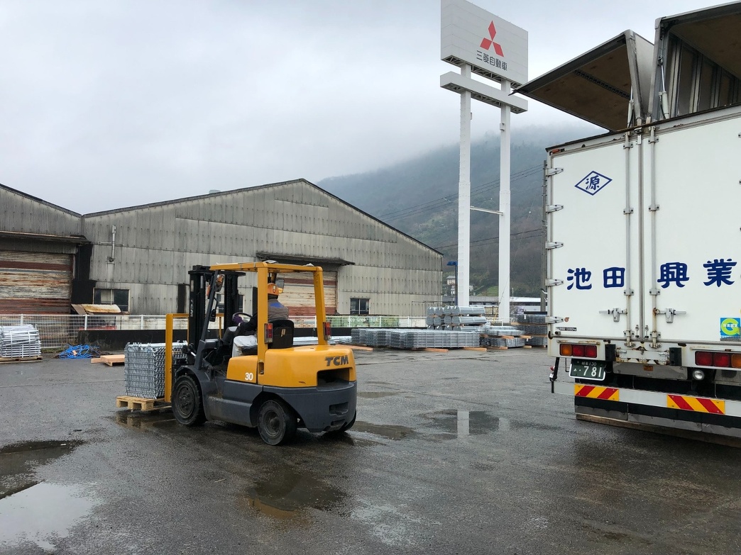 続々と資材が搬入されています。 中継、資材の積み替え、保管もお任せ下さい。