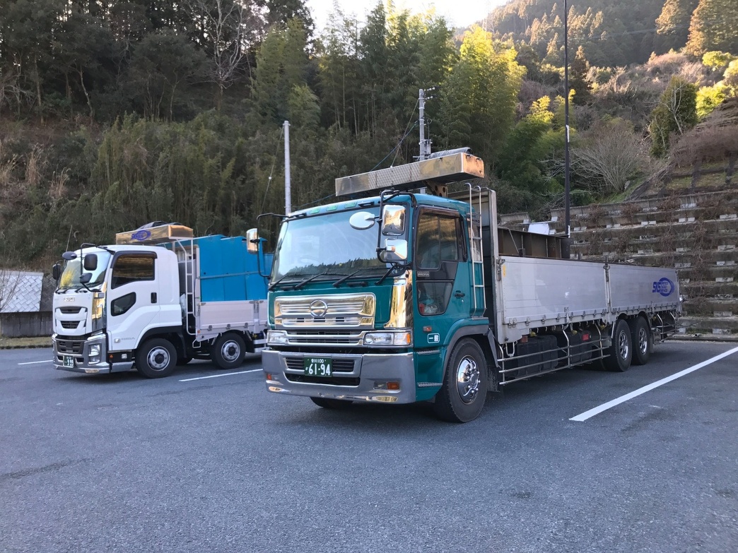 本日は四万十市へ鉄骨の配送を終わらせて四万十市のトンネル掘削現場より大型2台分の機材引き取りです。新しく導入した車両もフル回転しております。
