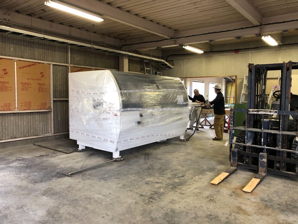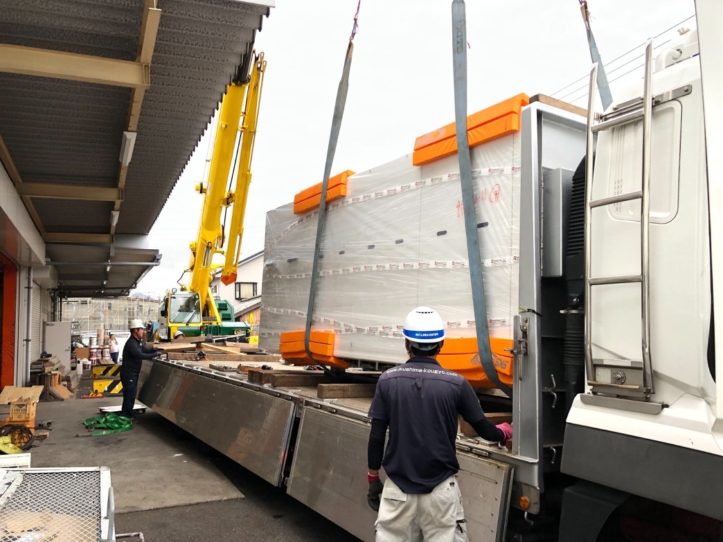 今日は丸亀市の会社様に工作機械の輸送と搬入設置作業をさせていただきました。イタリアからコンテナに入って届いた特注品の木工機械です。大型トラック2台で神戸港から引き取りさせていただきました。香川発の素晴らしい窓を制作するそうです。稼働する日が楽しみです。