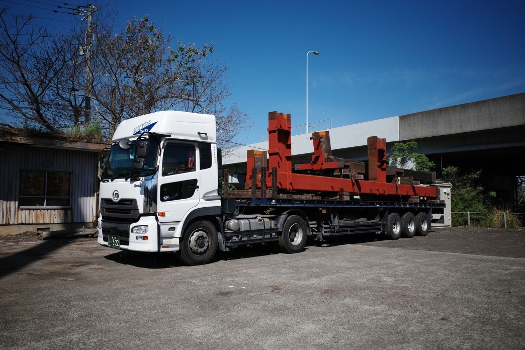 鉄骨 一時保管の依頼を受けました。 中継、資材の積み替え、保管もお任せ下さい。
