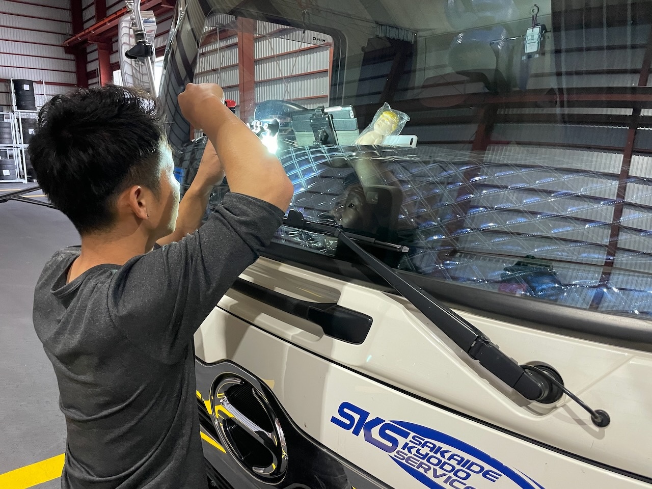 最近の車両は前方カメラや車間レーダーなど色々な装備がフロントガラスに装備されているので